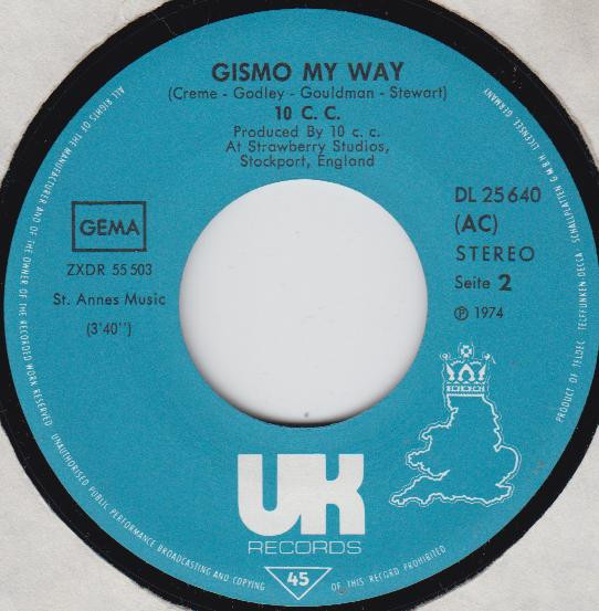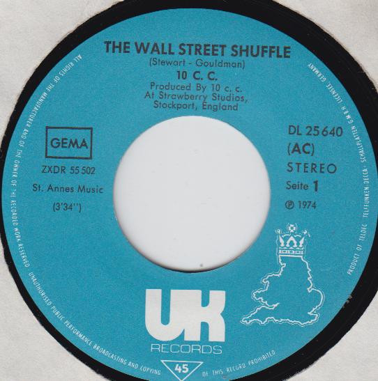 10cc – The Wall Street Shuffle / Gismo My Way (1974) – Very Good (VG)