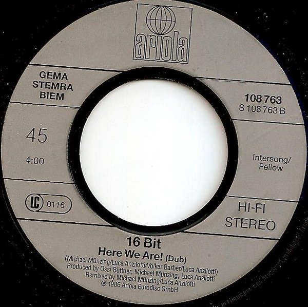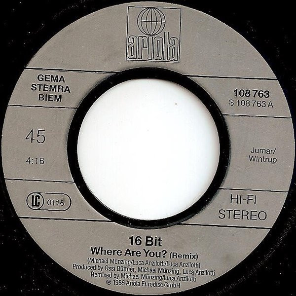 16 Bit – Where Are You? Remix (We Know The Way) (1986) – Very Good (VG)