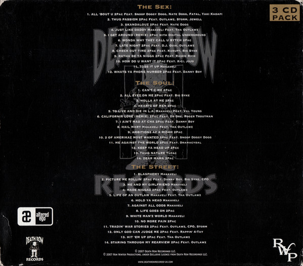 © 2007 Death Row Recordings Llc. © 2007 Ron Winter Productions, under exclusive license from Death Row Recordings Llc. www.alteredegomusic.com Distributed Exclusively in the UK & Ireland by Pickwick Group Ltd. www.deathrowrecords-uk.com Mastered at Amana Studios, London Sleeve Design: Creative Juice Associates Comes in double jewel case. Box set comes in cardboard sleeve.