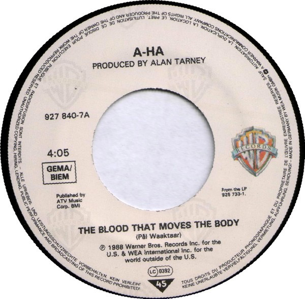 a-ha – The Blood That Moves The Body (1988) – Very Good Plus (VG+)