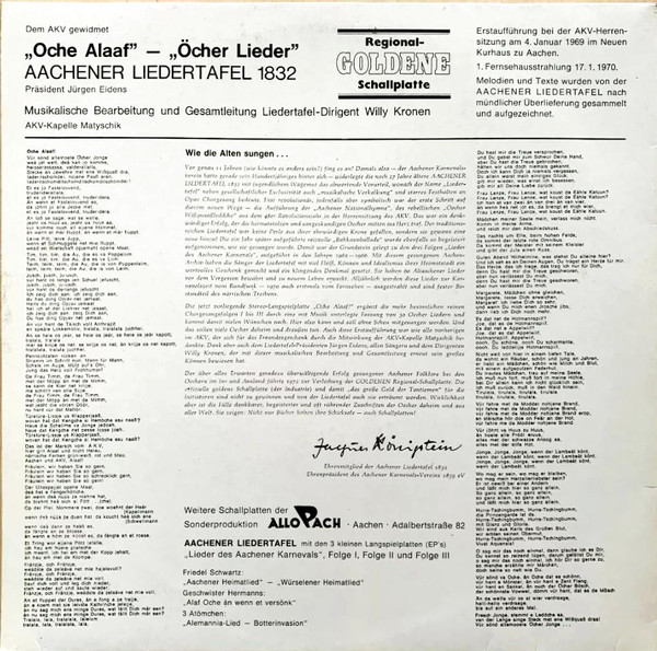 Aachener Liedertafel – Oche Alaaf, Öcher Lieder (1973) – Near Mint (NM or M-)