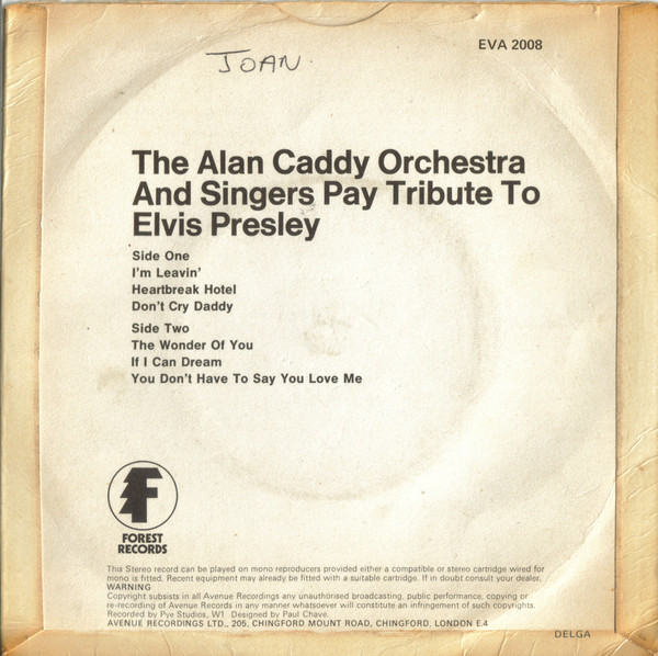 Alan Caddy Orchestra & Singers – Pay Tribute To Elvis Presley (1971) – Very Good Plus (VG+)