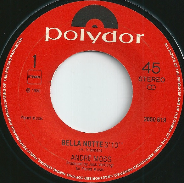 André Moss – Bella Notte (TV Tune) (1980) – Very Good Plus (VG+)