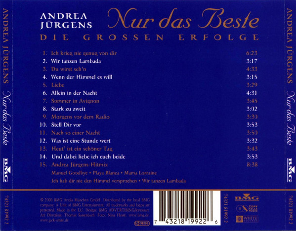 Andrea Jürgens – 2000) – Andrea Jürgens – Nur Das Beste (Die Grossen Erfolge 1983 – 2000) (2000) – Very Good Plus (VG+)