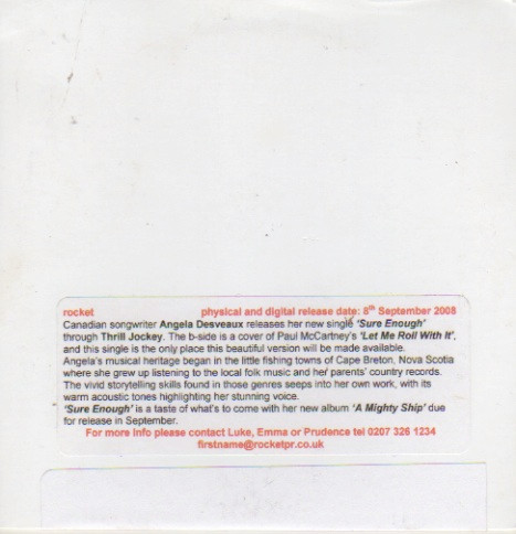 Angela Desveaux & The Mighty Ship – Sure Enough / Let Me Roll It (2008) – Very Good Plus (VG+)