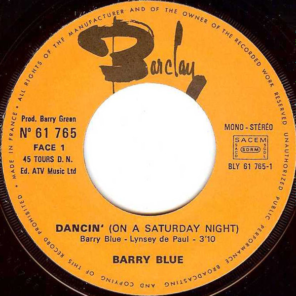 Barry Blue – Dancin’ (On A Saturday Night) (1973) – Very Good Plus (VG+)