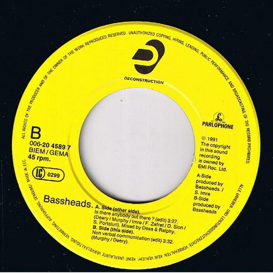 Bassheads – Is There Anybody Out There? (1991) – Very Good (VG)