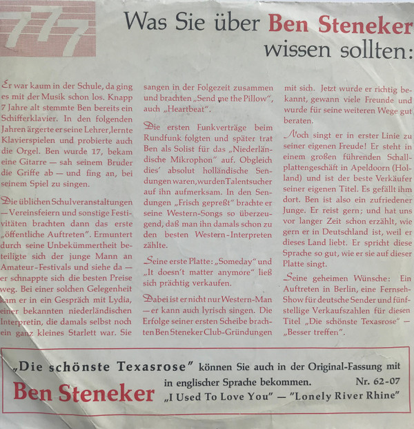 Ben Steneker – Die Schönste Texasrose (1963) – Very Good (VG)