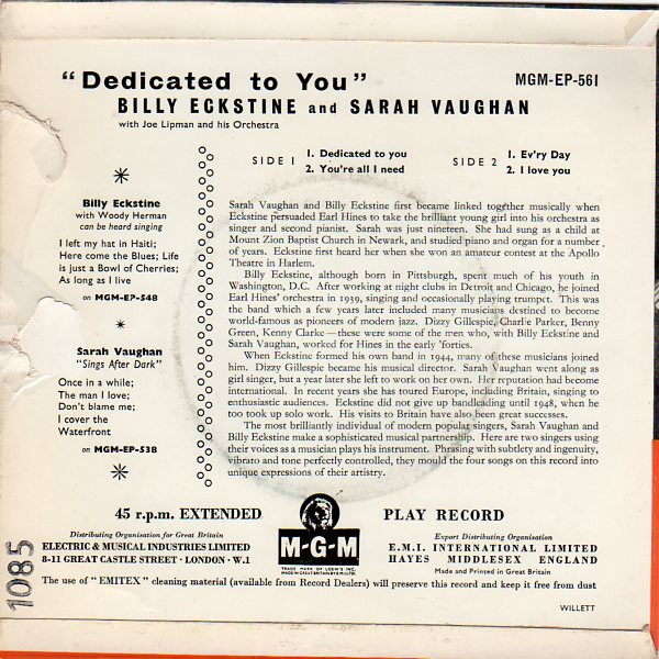 Label: MGM Records – MGM-EP-561