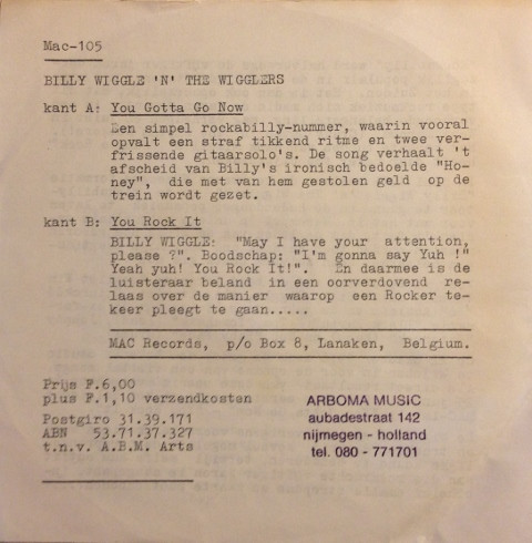 Billy Wiggle ‘n’ The Wigglers – You Gotta Go Now (1977) – Very Good Plus (VG+)