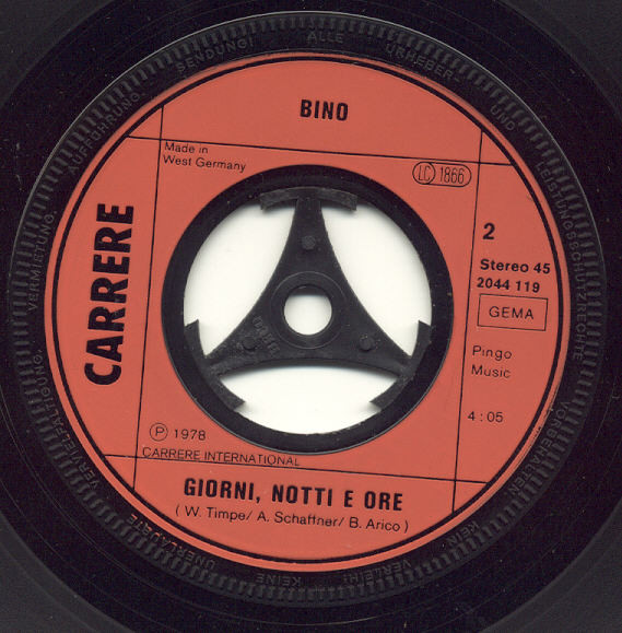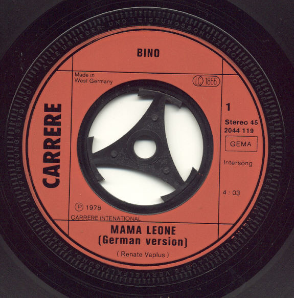 ℗ 1978 Carrere International A: Intersong B: Pingo Music Deutsche Originalversion 1978 Made in West Germany A-Side: Cover Version of [r4724365]