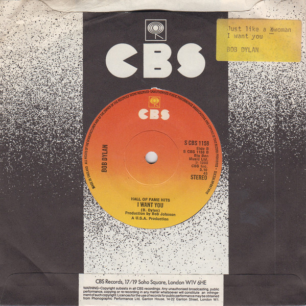Bob Dylan – Just Like A Woman / I Want You (1979) – Very Good Plus (VG+)
