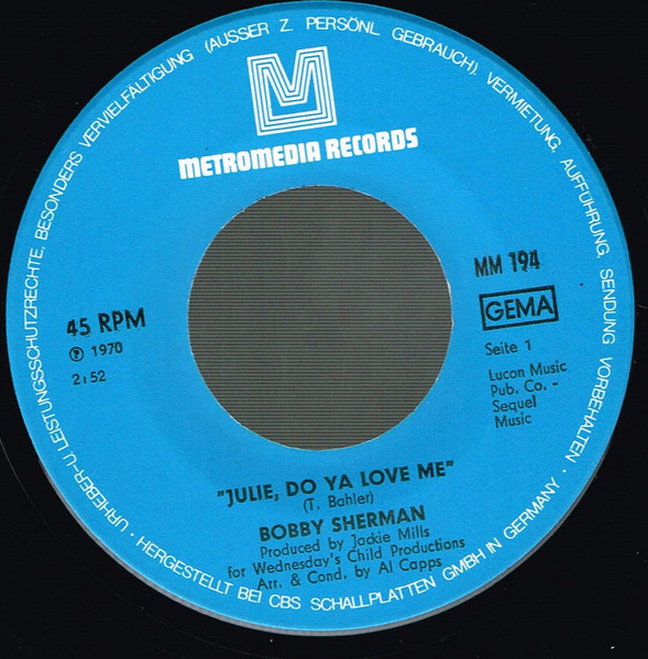 Bobby Sherman – Julie, Do Ya Love Me (1970) – Very Good Plus (VG+)