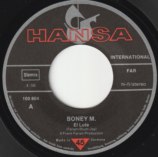 Boney M. – El Lute / Gotta Go Home (1979) – Near Mint (NM or M-)