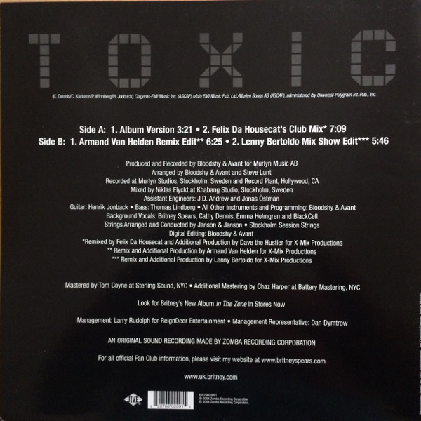 - A2 – Toxic (Felix Da Housecat’s Club Mix) (7:09)