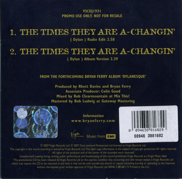 Bryan Ferry – The Times They Are A-Changin’ (2007) – Very Good Plus (VG+)