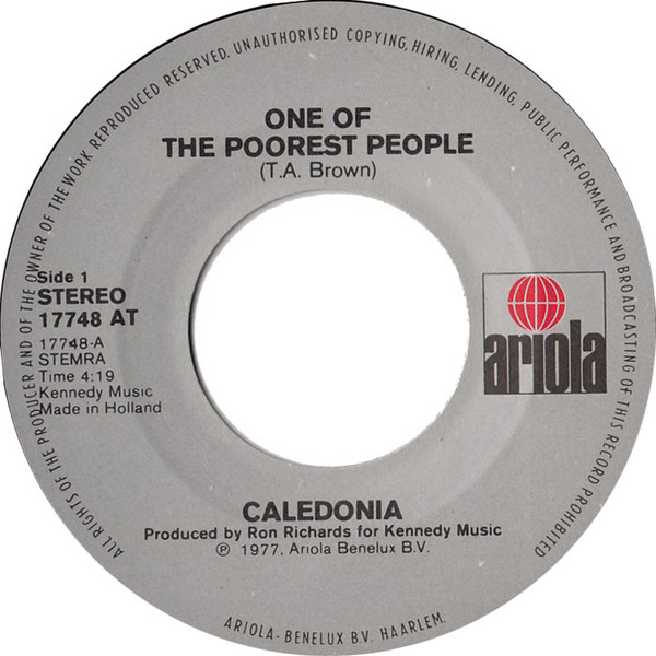 Caledonia (6) – One Of The Poorest People (1977) – Very Good Plus (VG+)