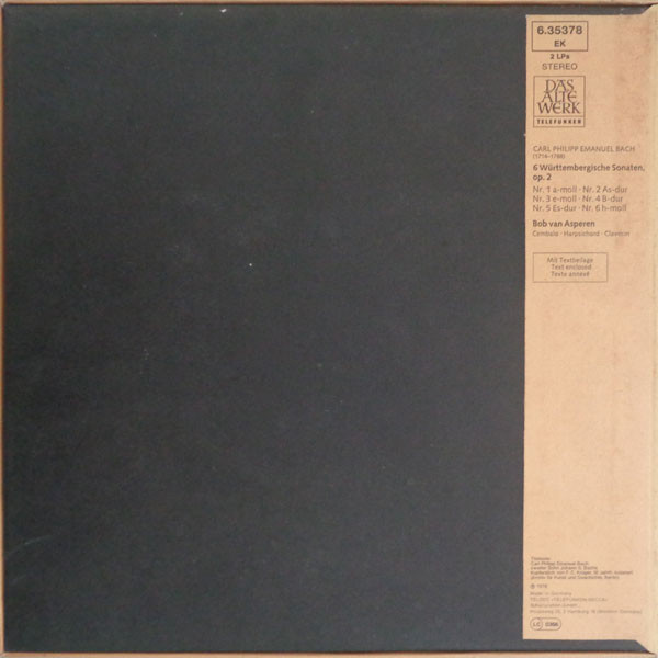 Carl Philipp Emanuel Bach – 6 Württembergische Sonaten Op. 2 (1978) – Near Mint (NM or M-)