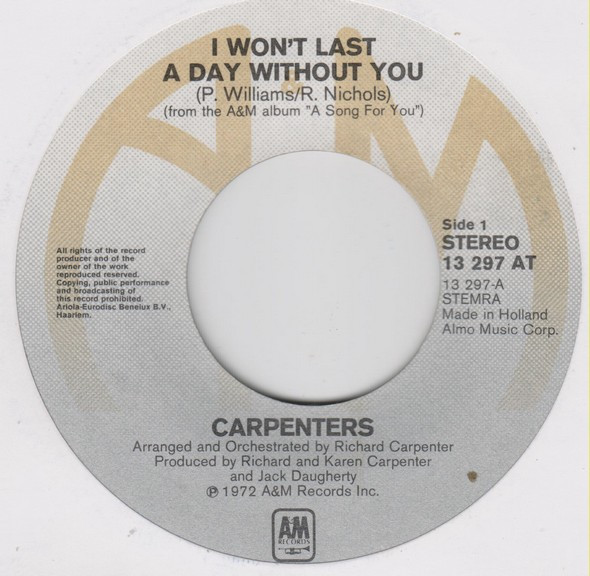 Carpenters – I Won’t Last A Day Without You