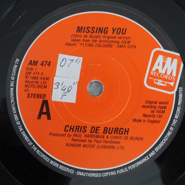 Chris De Burgh – Missing You (1988) – Very Good Plus (VG+)