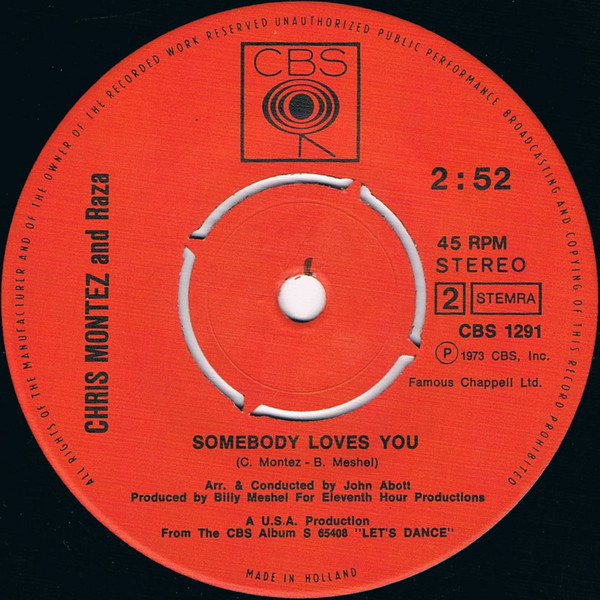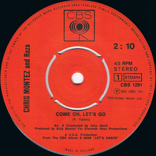 Chris Montez – Come On Let’s Go / Somebody Loves You (1973) – Very Good (VG)
