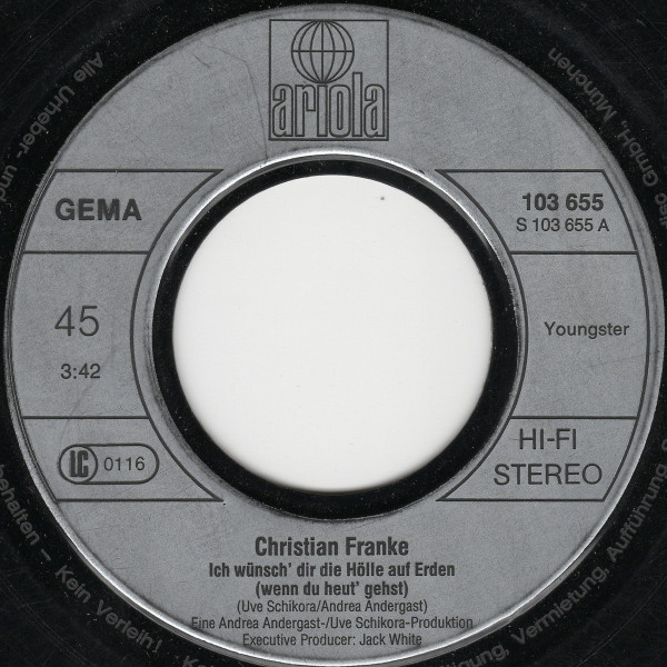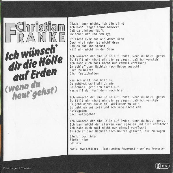 Christian Franke – Ich Wünsch’ Dir Die Hölle Auf Erden (Wenn Du Heut’ Gehst) (1981) – Very Good Plus (VG+)