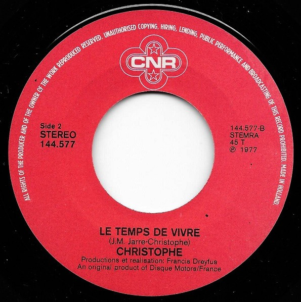 Christophe – Main Dans La Main / Le Temps De Vivre (1977) – Very Good Plus (VG+)