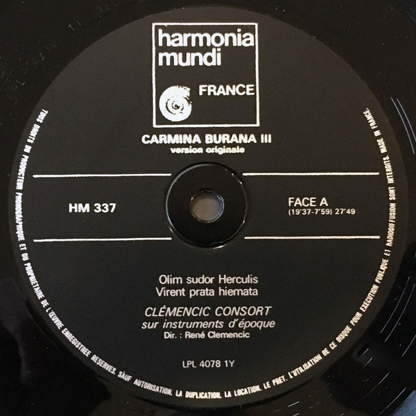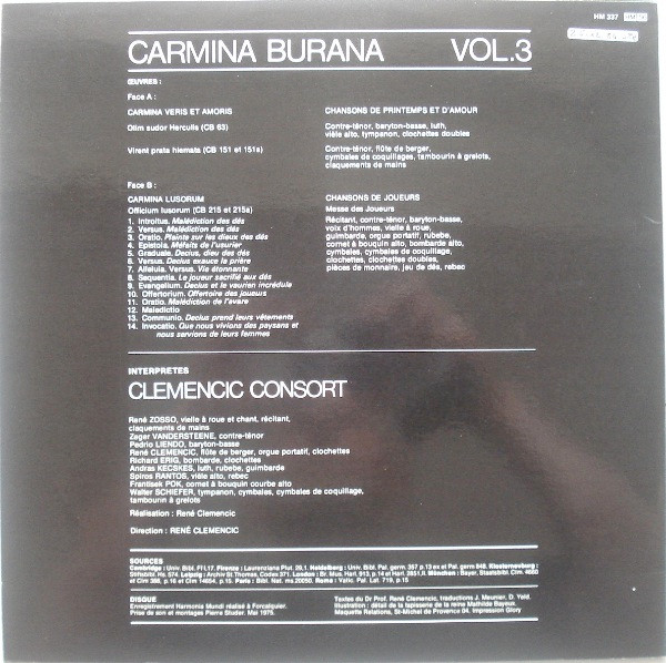 Clemencic Consort – Messe Des Joueurs – Clemencic Consort – Carmina Burana Volume 3, Version Originale & Intégrale, Chansons De Printemps Et D’Amour – Messe Des Joueurs () – Near Mint (NM or M-)