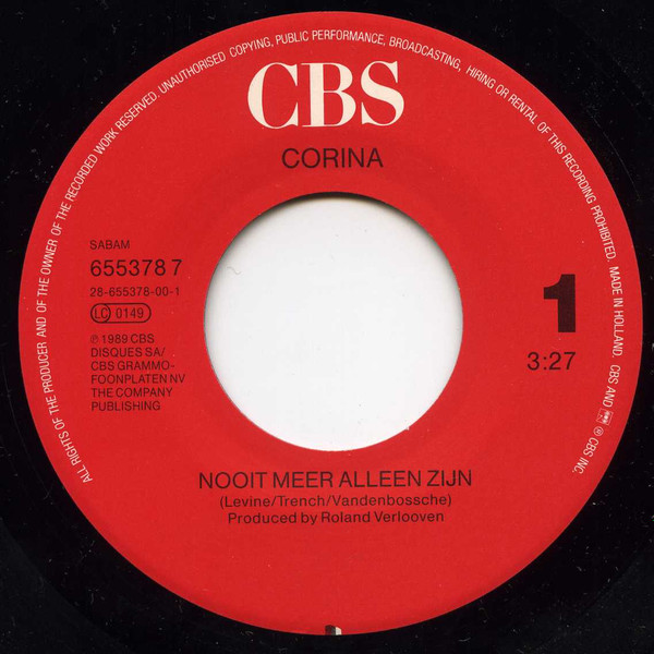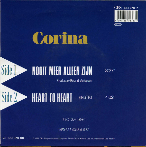 Corina (3) – Nooit Meer Alleen Zijn / Heart To Heart (1989) – Near Mint (NM or M-)