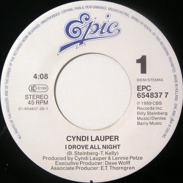 Cyndi Lauper – I Drove All Night (1989) – Very Good Plus (VG+)