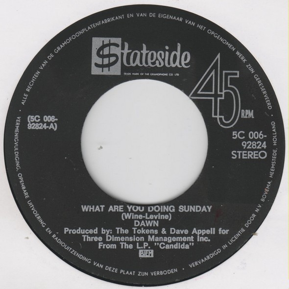 Dawn (5) – What Are You Doing Sunday (1971) – Very Good Plus (VG+)
