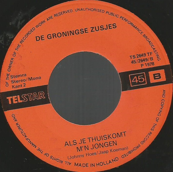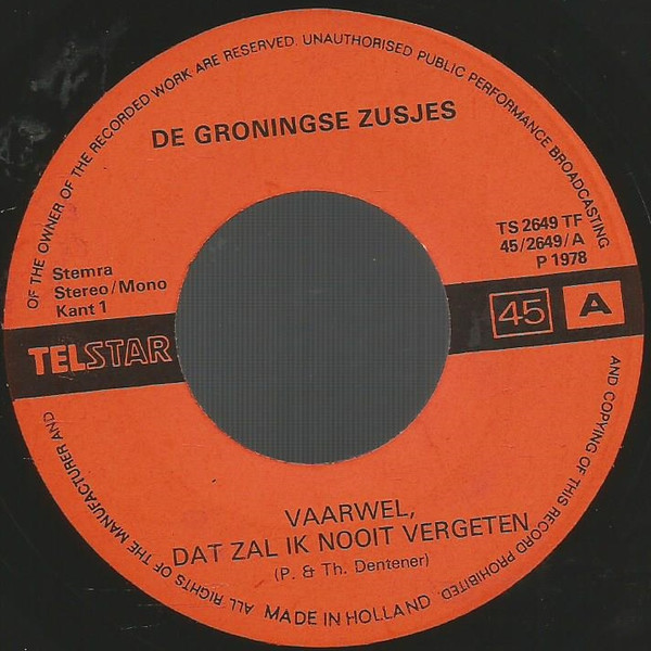 De Groningse Zusjes – Vaarwel, Dat Zal Ik Nooit Vergeten (1978) – Very Good (VG)