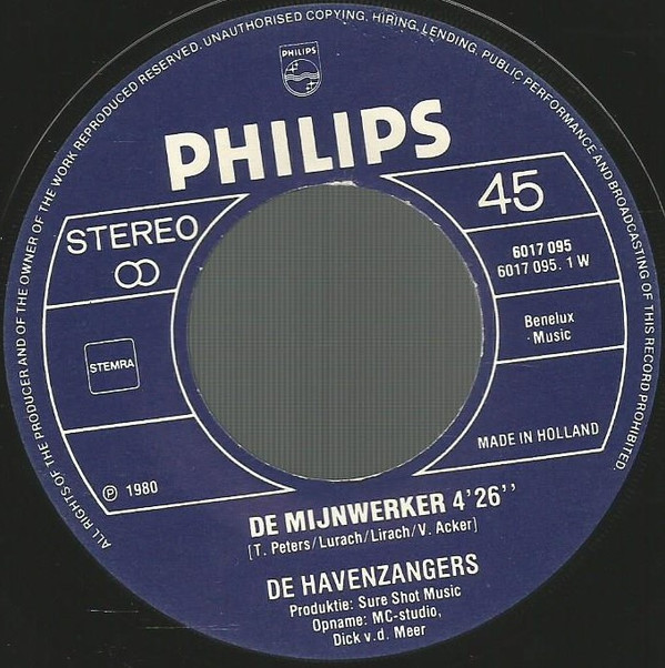 De Havenzangers – De Mijnwerker (1980) – Near Mint (NM or M-)