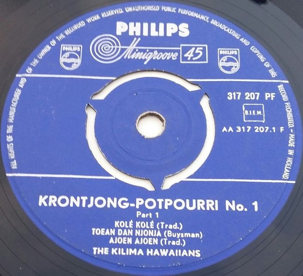 De Kilima Hawaiians – Krontjong Potpourri No. 1 () – Very Good Plus (VG+)