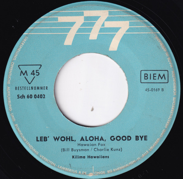 De Kilima Hawaiians – Sarina / Leb’ Wohl, Aloha, Good Bye