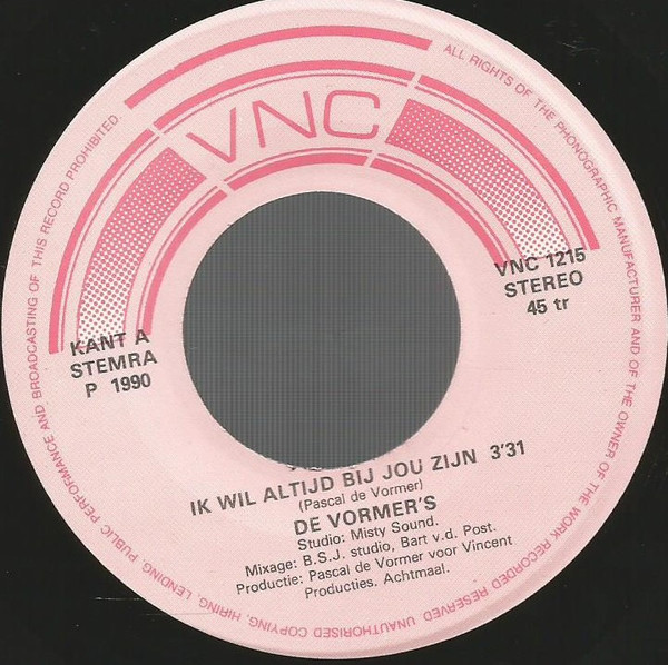 De Vormers (2) – Ik Wil Altijd Bij Jou Zijn (1990) – Very Good Plus (VG+)