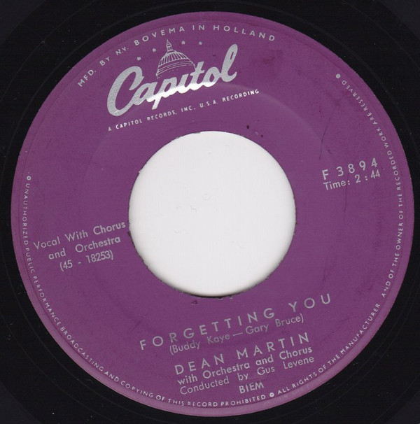 Dean Martin – Return To Me / Forgetting You () – Very Good Plus (VG+)