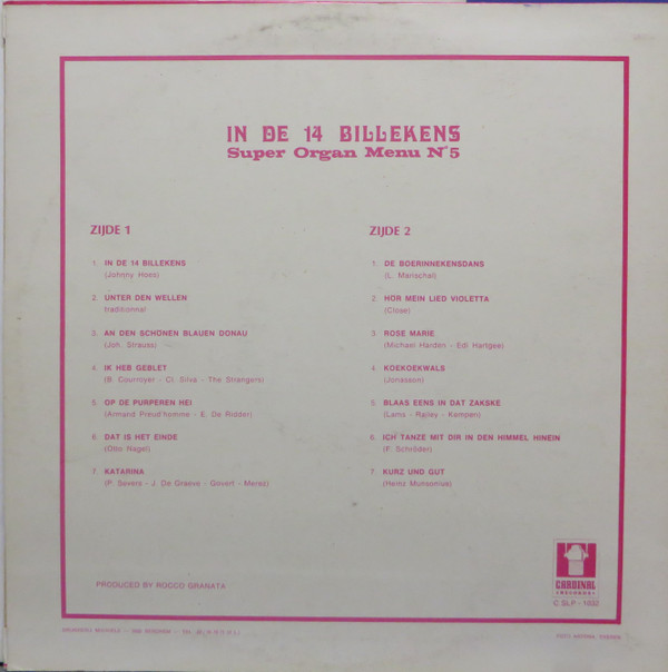 Decap-Orgel In De 14 Billekens – In De 14 Billekens – Super Organ Menu N° 5 (Wereldsuccessen)