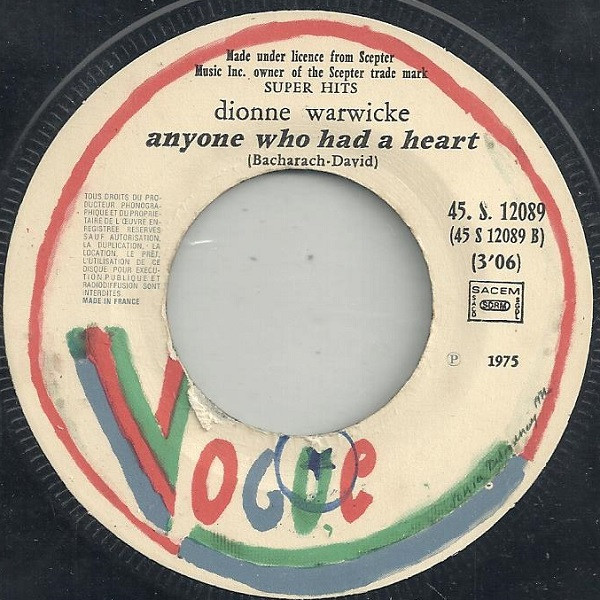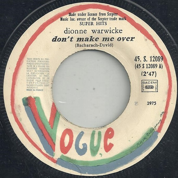 Dionne Warwick – Don’t Make Me Over / Anyone Who Had A Heart (1975) – Very Good Plus (VG+)