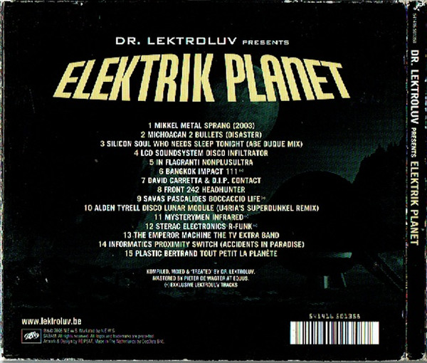 Issued as a 3-panel Digipak. Full title as on release: Dr. Lektroluv Presents Elektrik Planet Tracks 6, 9, 11 & 12 are exclusive to this compilation.