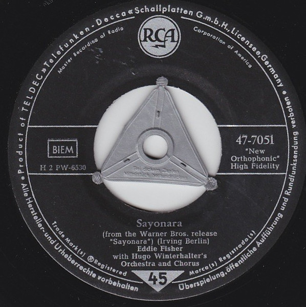 Eddie Fisher, Hugo Winterhalter’s Orchestra And Chorus – Sayonara (1957) – Very Good Plus (VG+)