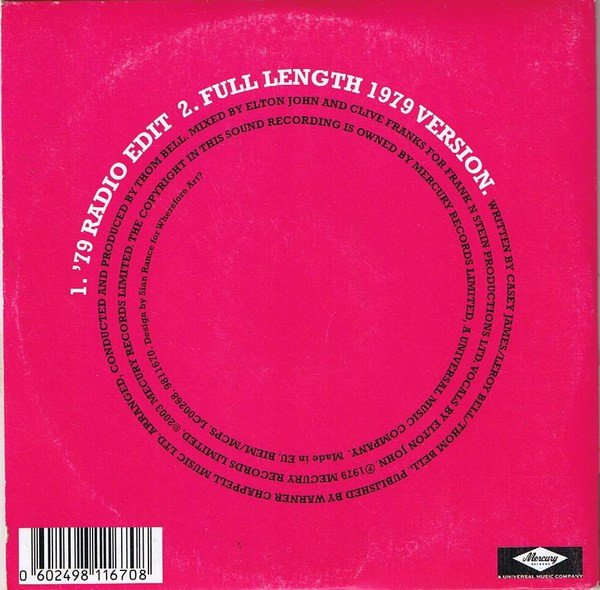 Track 1 listed as ”79 Radio Edit’ on sleeve Track 2 listed as ‘Full Length 1979 Version’ on sleeve Published by Warner Chappell Music Ltd. Mixed for Frank N Stein Productions Ltd. ℗1979 Mercury Records Limited. ©2003 Mercury Records Limited. A Universal Music Company. Made In The EU.
