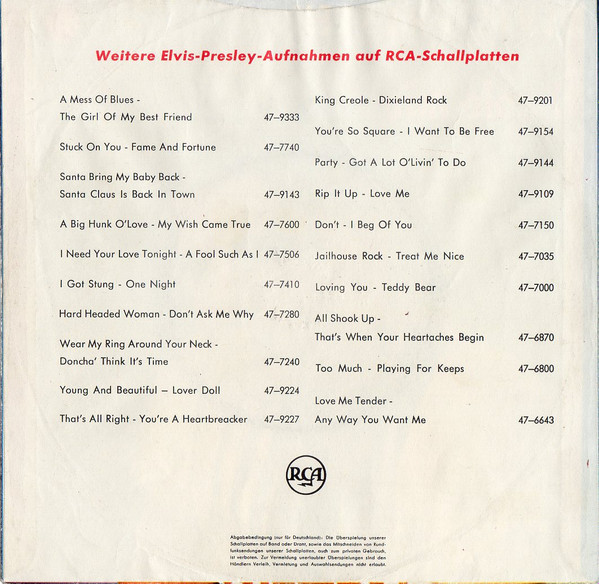 Elvis Presley – O Sole Mio (It’s Now Or Never) – Elvis Presley – O Sole Mio (It’s Now Or Never) (1960) – Very Good (VG)