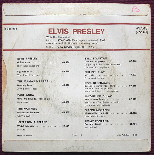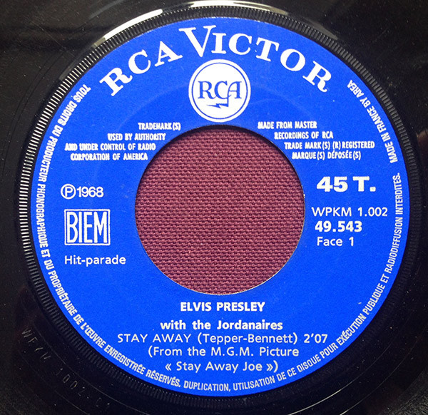 Elvis Presley – Stay Away / U.S. Male (1968) – Very Good Plus (VG+)