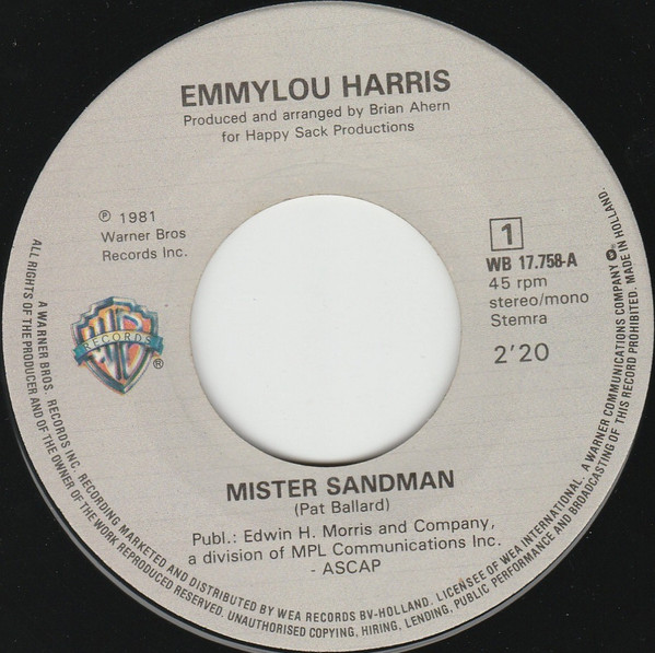 Emmylou Harris – Mister Sandman (1981) – Very Good Plus (VG+)