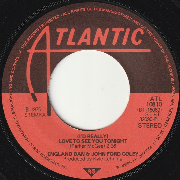 England Dan & John Ford Coley – (I’d Really) Love To See You Tonight (1976) – Very Good Plus (VG+)