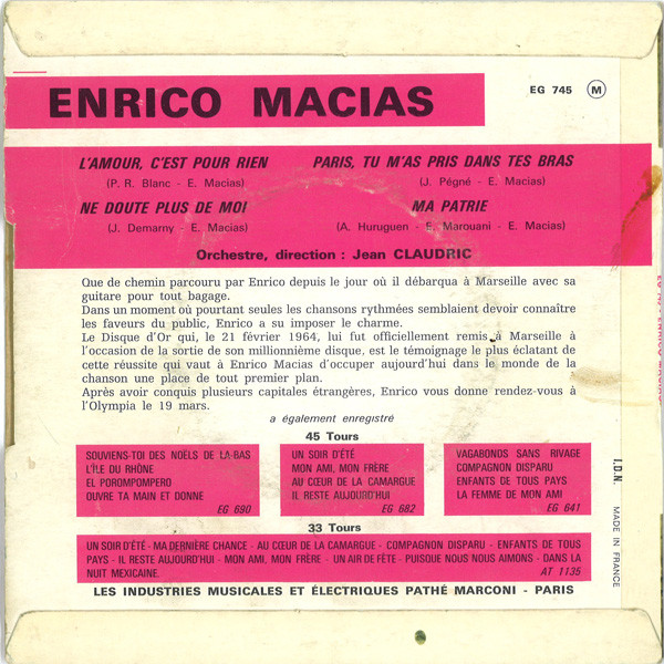 Enrico Macias – L’amour, C’est Pour Rien (1964) – Very Good (VG)