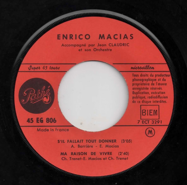 Enrico Macias – S’il Fallait Tout Donner (1964) – Very Good (VG)