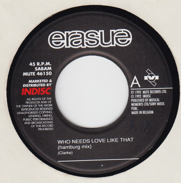 Erasure – Who Needs Love (Like That) (1992) – Very Good Plus (VG+)