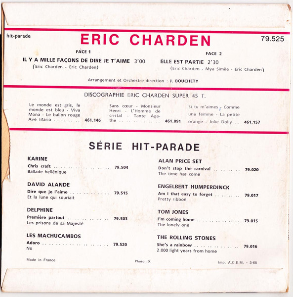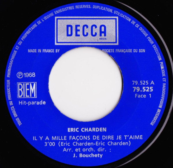 Eric Charden – Il Y A Mille Façons De Dire Je T’aime / Elle Est Partie (1968) – Very Good Plus (VG+)